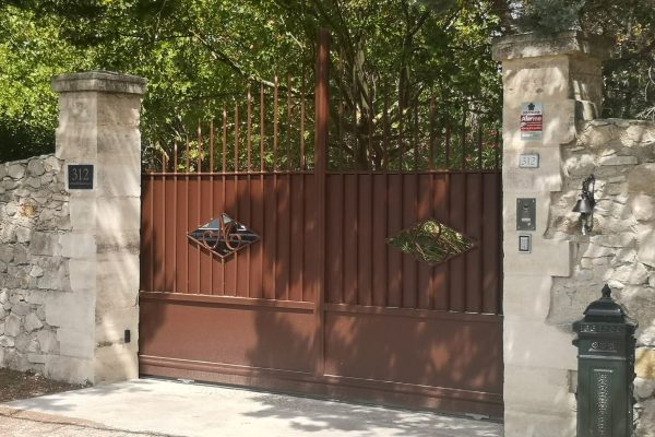 L’accès à la propriété se fait par un portail en fer forgé (4 mètres de largeur). L’ouverture est contrôlée par un parlophone. Les accès sont surveillés.