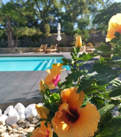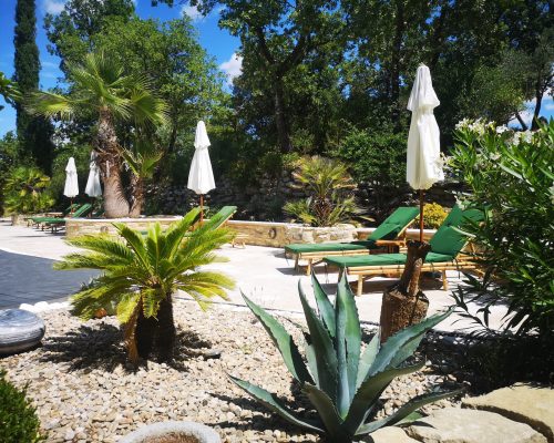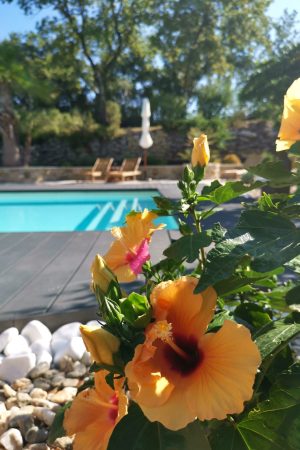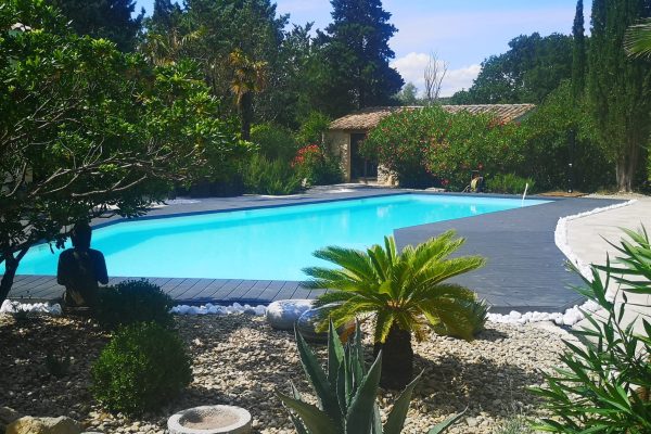 En bordure de l’orangerie, la piscine, c’est un des joyaux de notre domaine. Elle vous surprendra sans doute par sa beauté et sa taille (19,5 x 5 m), les galets blancs et les plantations qui l’entourent, l’espace de repos qu’elle procure, l’éclairage tamisé en fin de soirée.