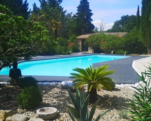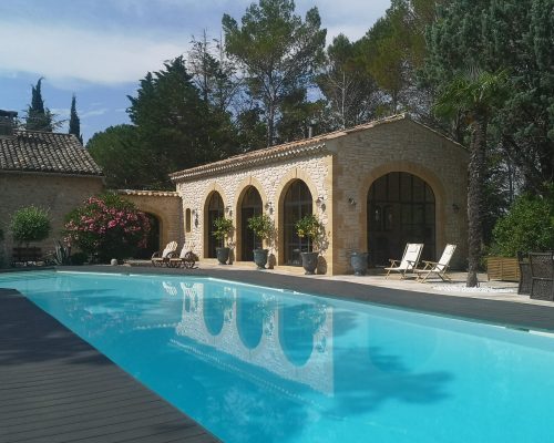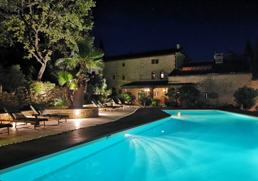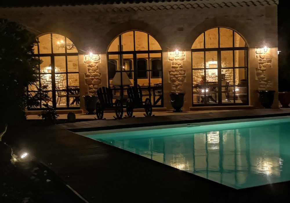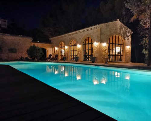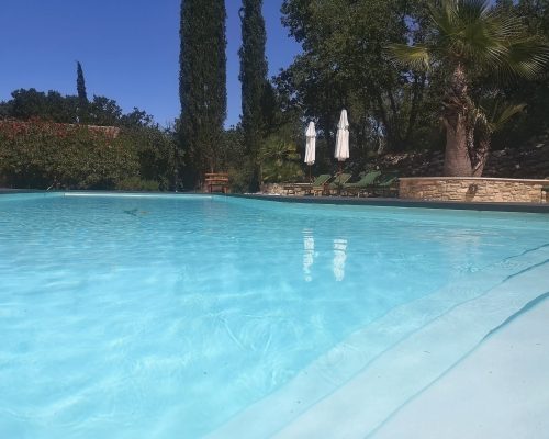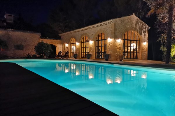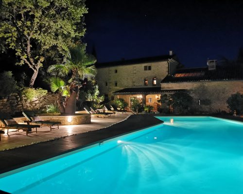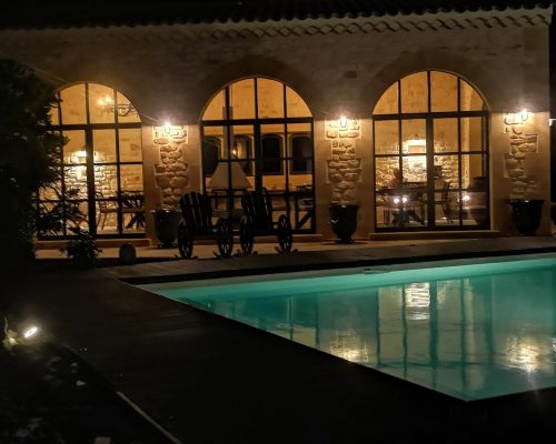 En bordure de l’orangerie, la piscine, un des joyaux de notre domaine. Elle vous surprendra sans doute par sa beauté et sa taille (19,5 x 5 m), les galets blancs et les plantations qui l’entourent, l’espace de repos qu’elle procure, l’éclairage tamisé en fin de soirée.